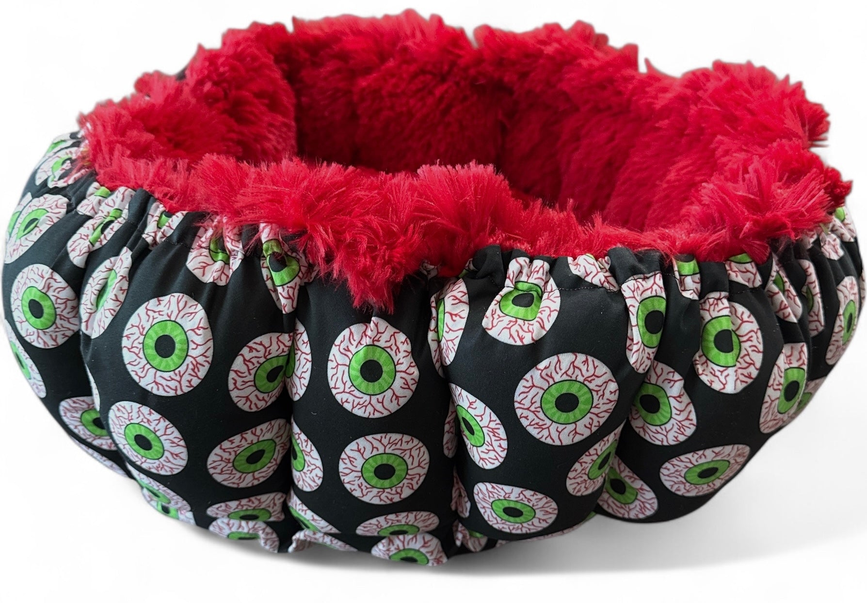 It's in the eyes! Possession! You should avoid looking into them directly if you know what's best for you. A playful design of blood-shot eyes to add a touch of paranoia without compromising comfort to your pet.