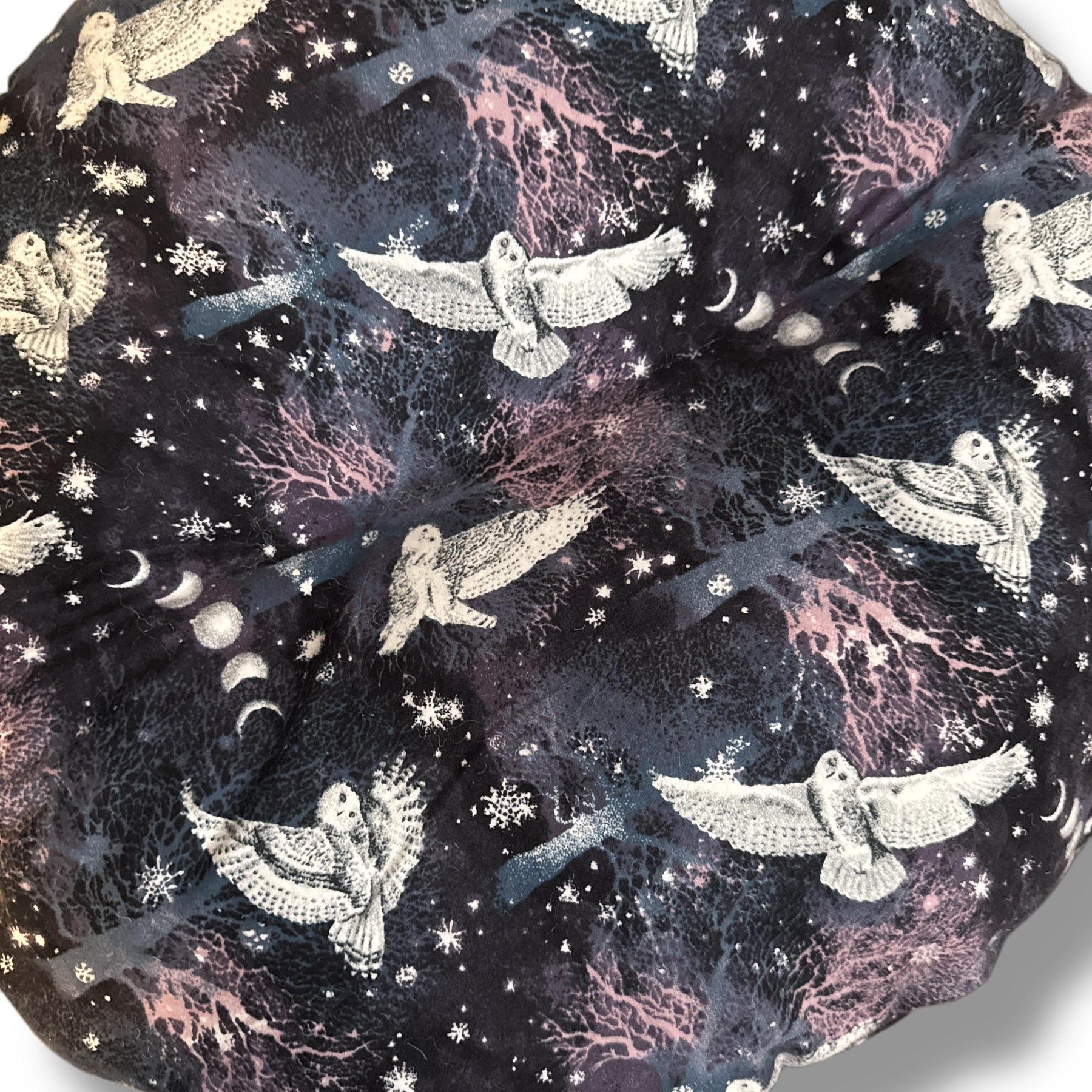 With its eerie trees, winter solstice moon phases, and a white owl, this purple night sky will make you and your pet feel like it's winter all year long.